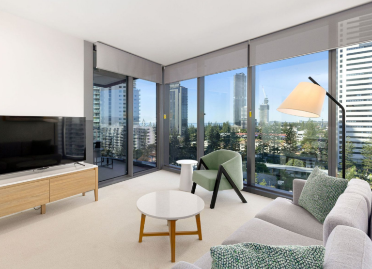 Each self-contained apartment comes complete with a fully equipped kitchen, inviting open-plan living area and stunning ocean views. If you can manage to peel yourself from this sun-drenched retreat, fill your days exploring some of Broadbeach’s best eateries, stretch out on the golden sands of Kurrawa Beach mere steps away or indulge in a retail therapy session at the renowned Pacific Fair Shopping Centre.
